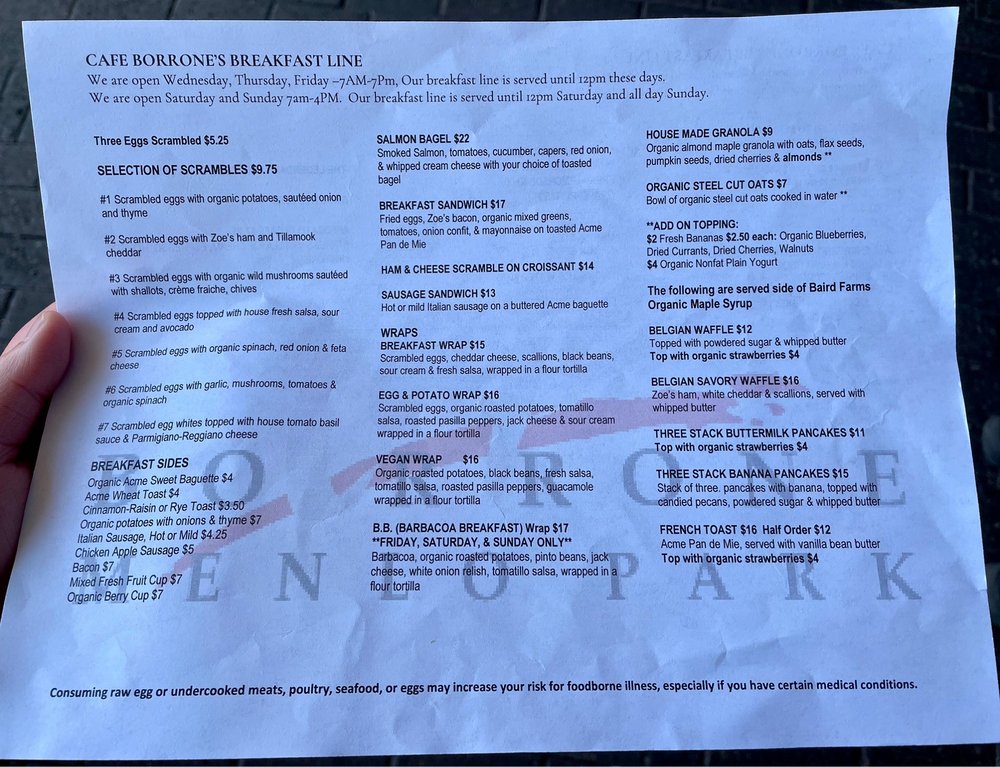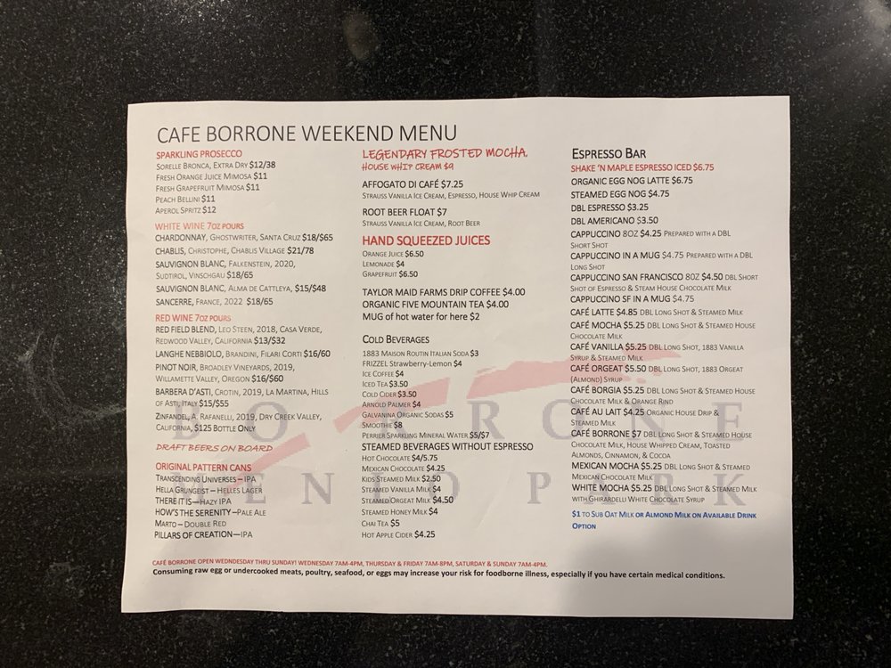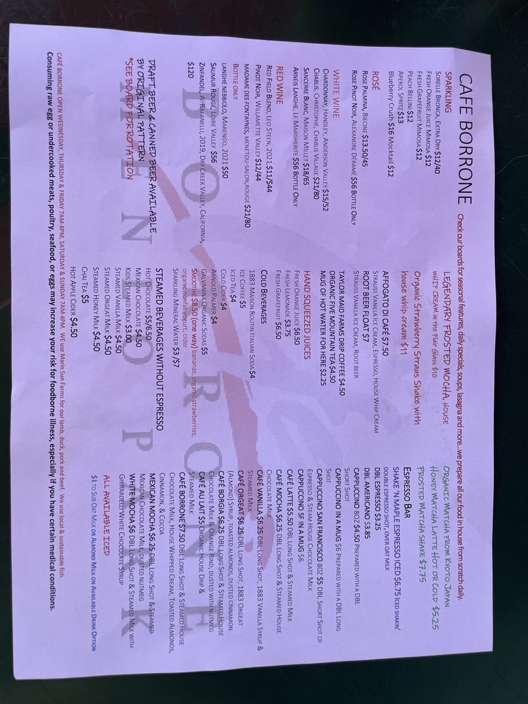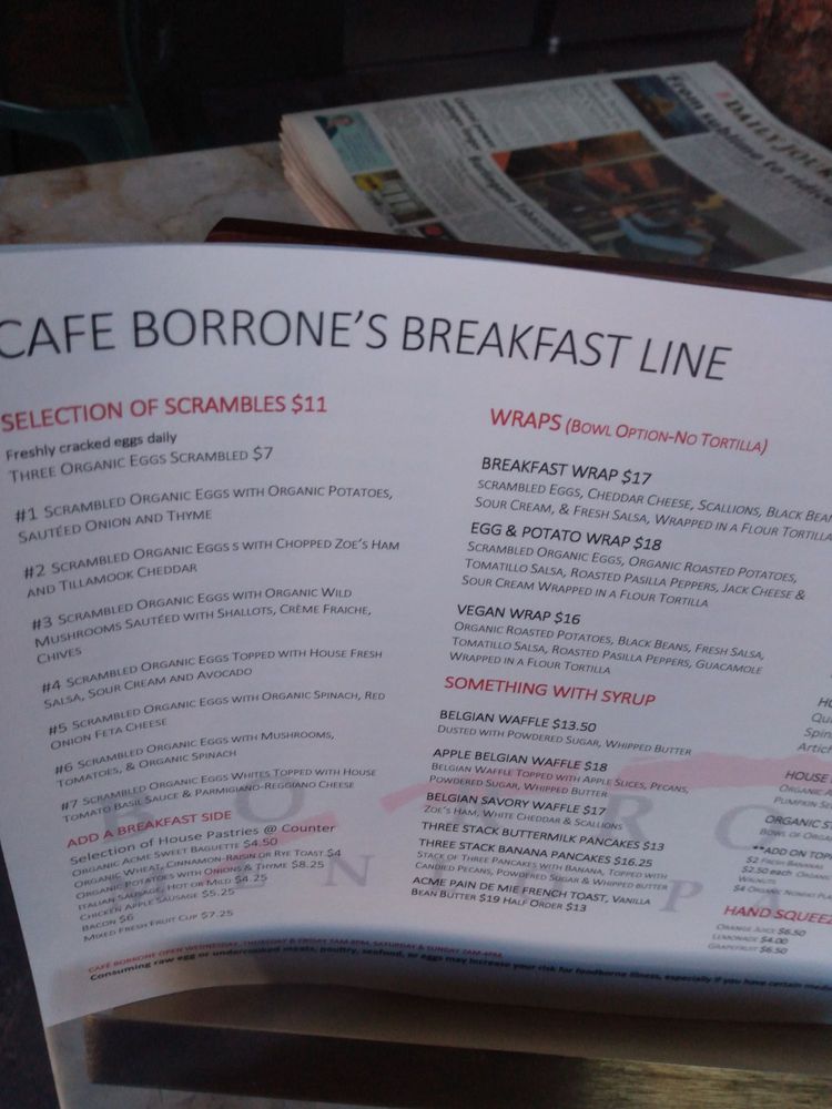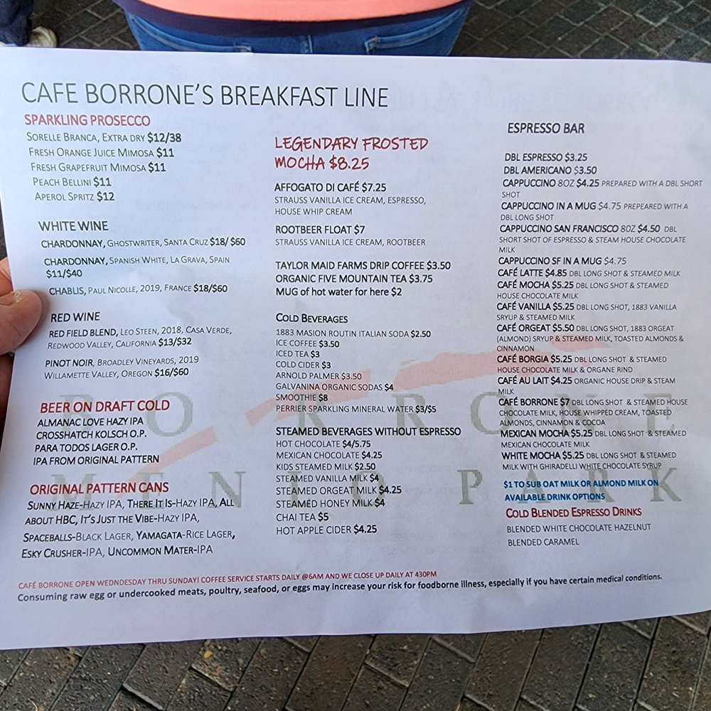 Cafe Borrone Menu (2025 Update)